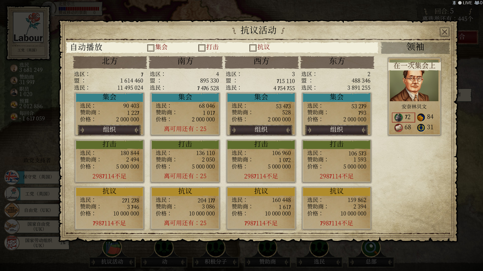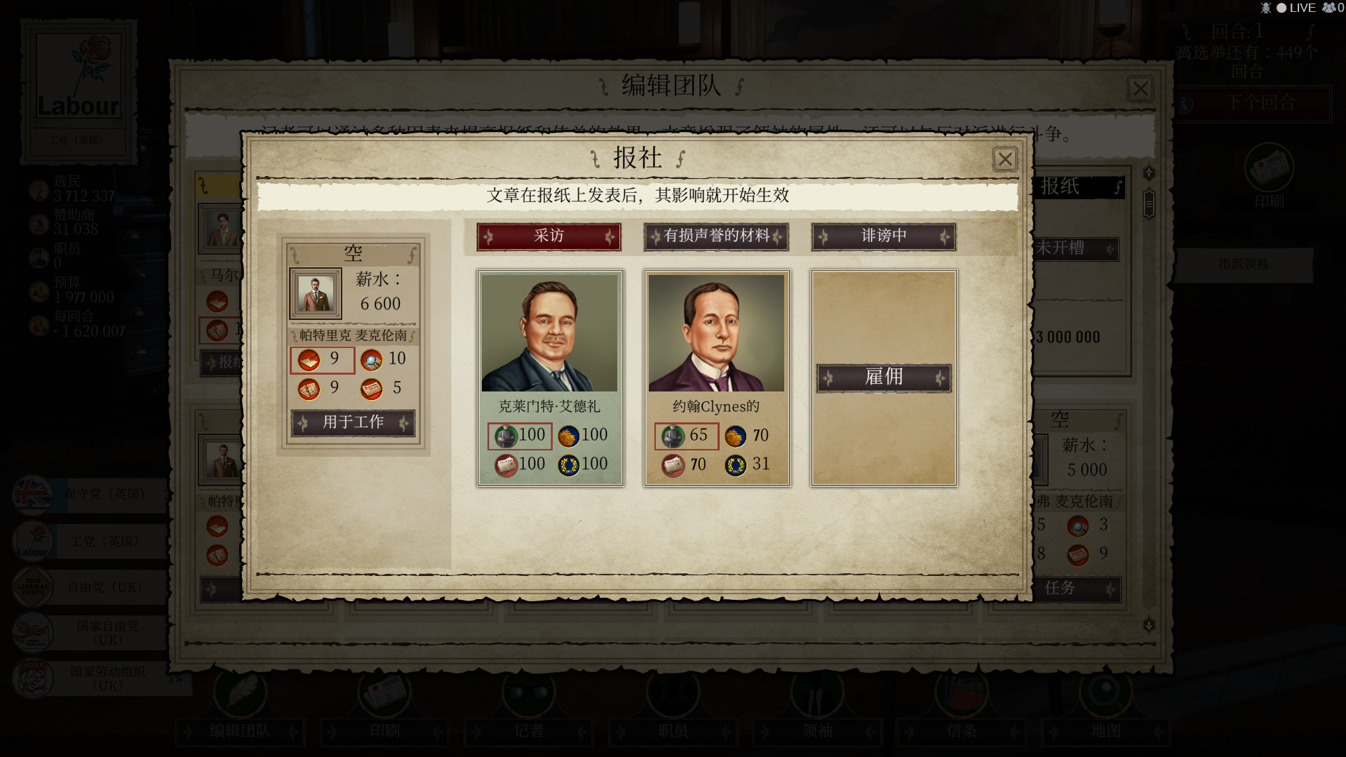 在这个政治模拟游戏中,你将扮演以下三国中,其中一国在1932-1935年期间的政党领袖:德国,法国,英国。在WWII 开始之前赢得选举。
