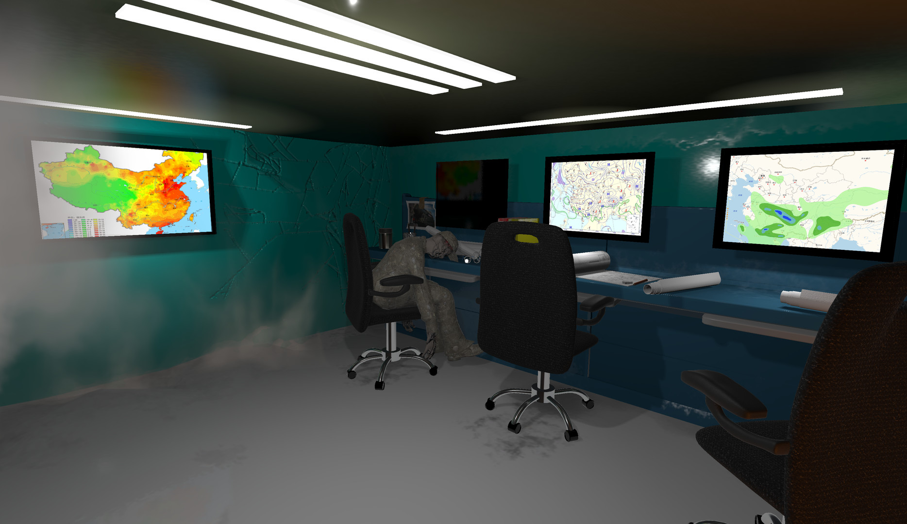 当小李潜入气象站的那一刻,他被眼前的一切惊呆了,甚至都不知道自己到底有多久没有动态,正大双眼说不出话来。那是一个气象站工作人员,全身都覆盖着石头,趴在办公桌上,准确的说像是被石化了一样,那个工作人员的行为并不夸张,可以判断整个石化过程在瞬间完成,就好像被神话中的美杜莎看了一眼一样,一切来不及反应,人已经成为了大石头。整个房间地面已经被类似于岩浆的物质顶起来一部分,造成了破裂,同时散发着很高的热量,小李来不及感觉自己有多热,当他正要掉头冲出房间时,另一个奇怪的现象让他犹豫了起来。房间正中央,有一部电梯,看上去是通往地下的,这说明地下一定有一个空间。小李定了定神,好奇心和爷爷生前奇怪的话语和行为让他实在想下去看个究竟。