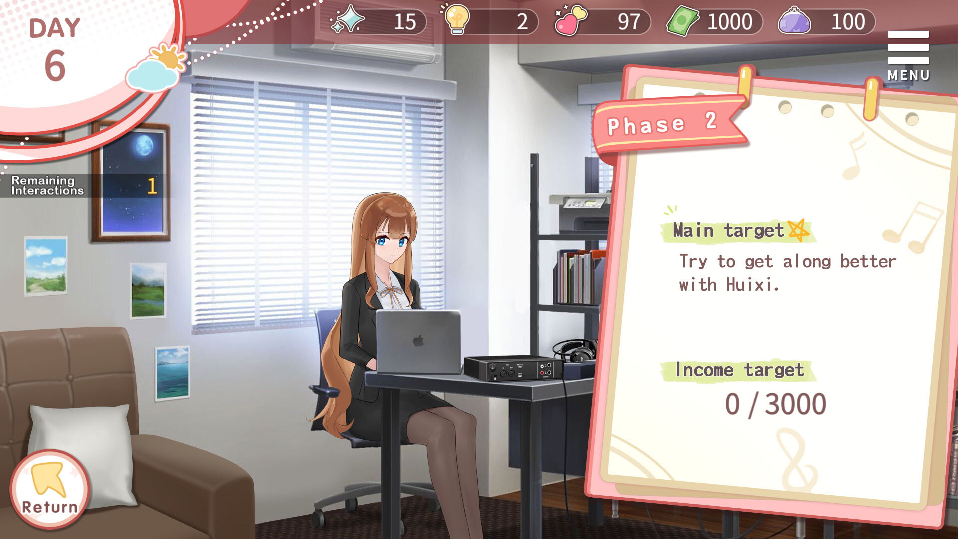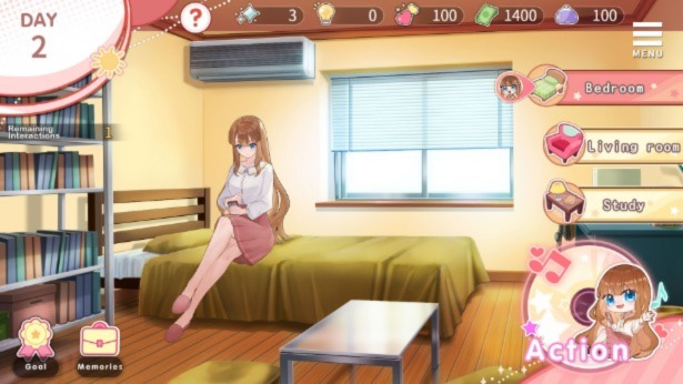 每日有四个时段,玩家可选择家中各个房间探索、行动,以及寻找慧晰与她互动。